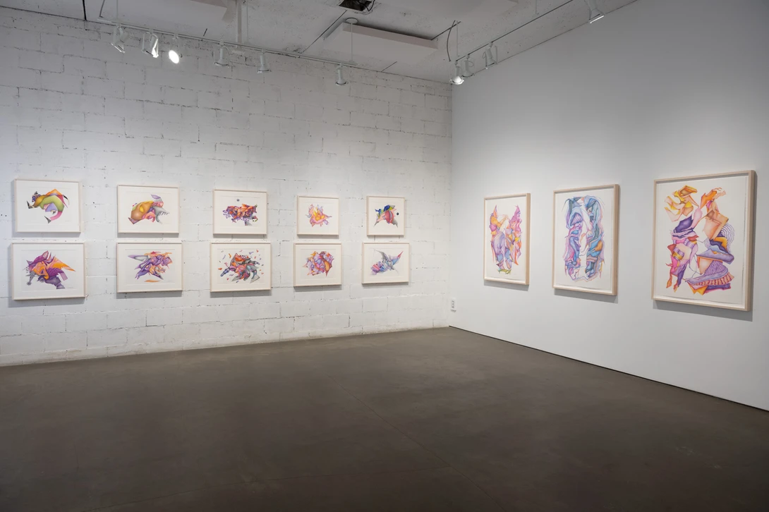 The first generation of drawings gave rise to solos, creatures reminiscent of animals, humans, and even robots, on an intimate scale (18x24, 16x20, and 11x15 inches). These solos allowed me to see how observing complex visual arrangements created by crumpling paper stimulated my abstract approach to drawing from observation.